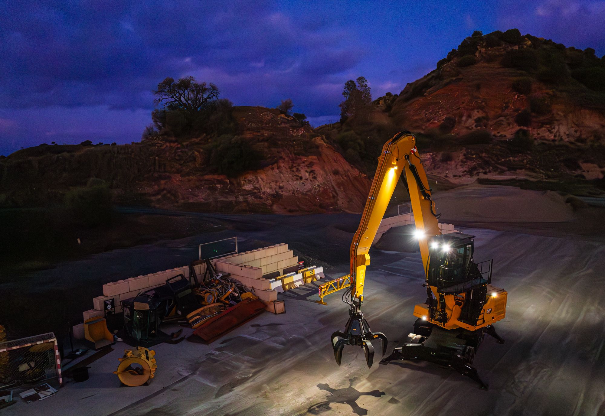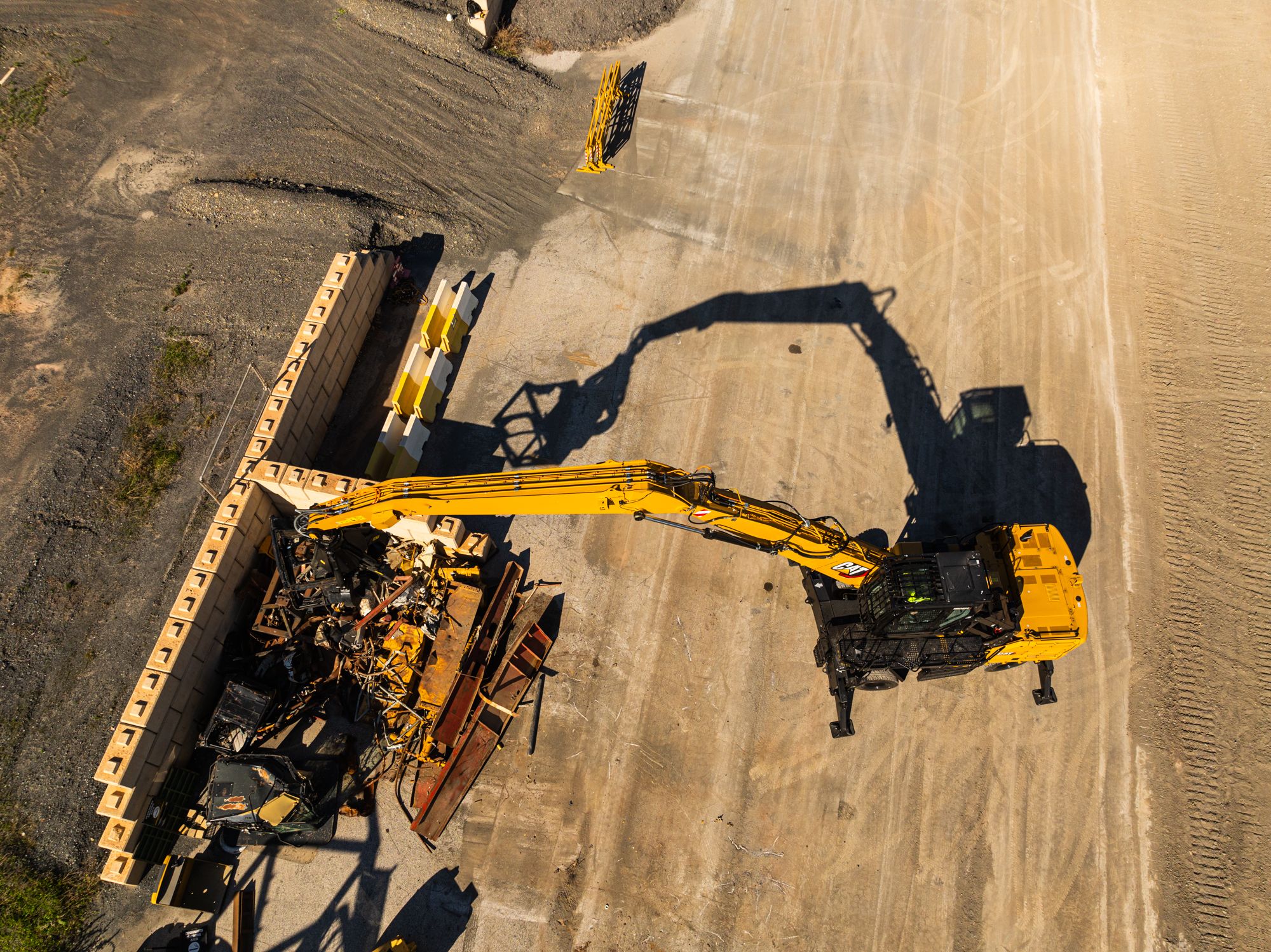 - Orange Peel Grapples: Built for scrap and bulk material handling, Orange Peel Grapples excel with irregular, heavy loads like metal, rock, and waste. Their hydraulic tines provide superior grip and penetration. High-capacity and continuous rotation are perfect for scrap yards and transfer stations. Cat® offers these grapples with a choice of different shell designs and tine options suited to various applications.