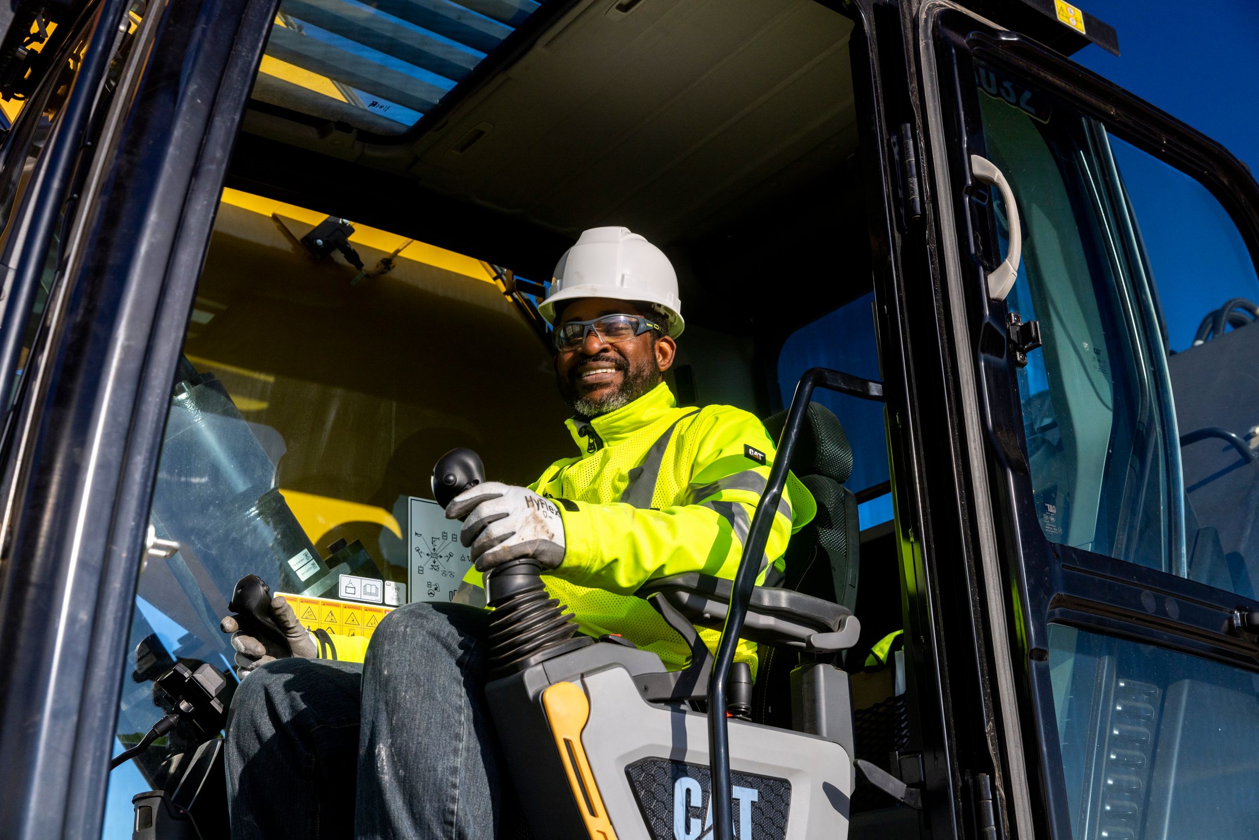 - The cab has a wide seat that adjusts for operators of all sizes.